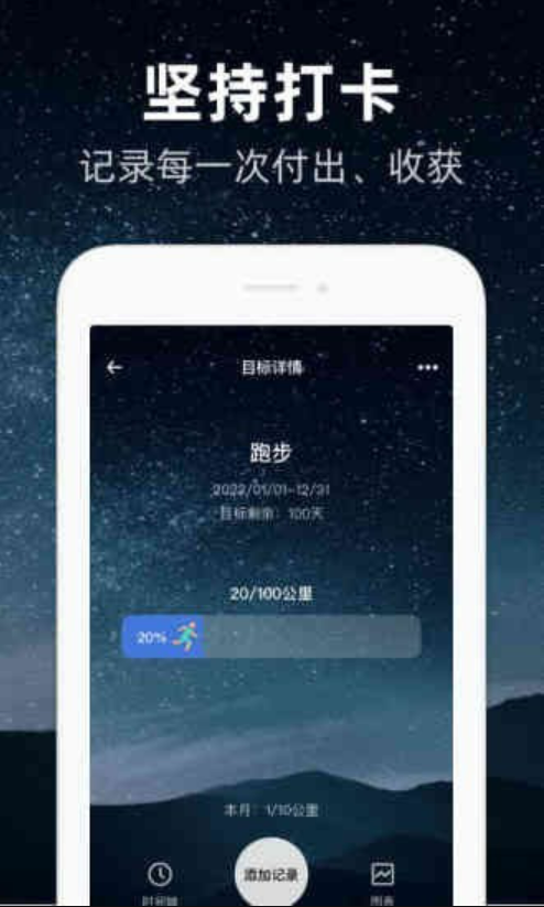 1、当你达到一定的目标值时,你可以打卡写下你当时的感受。