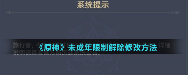 原神游戏当中最新推出了未成年的相关系统的限制,很多玩家小伙伴都很想要解除这个未成年限制的,可是不知道具体该如何去进行操作,从而不影响到自己的正常游戏,那么具体的解除操作方法又是什么呢,接下来小编就为大家带来《原神》未成年限制解除修改方法。