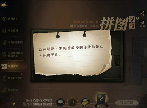 哈利波特魔法觉醒拼图寻宝攻略9.28又回归到了三条线索,每天寻找三块拼图,收集奖励进度就快多了。下面小编就为大家带来哈利波特魔法觉醒拼图寻宝9月28日的攻略,找不到的话就来看下最新的拼图图文攻略吧。